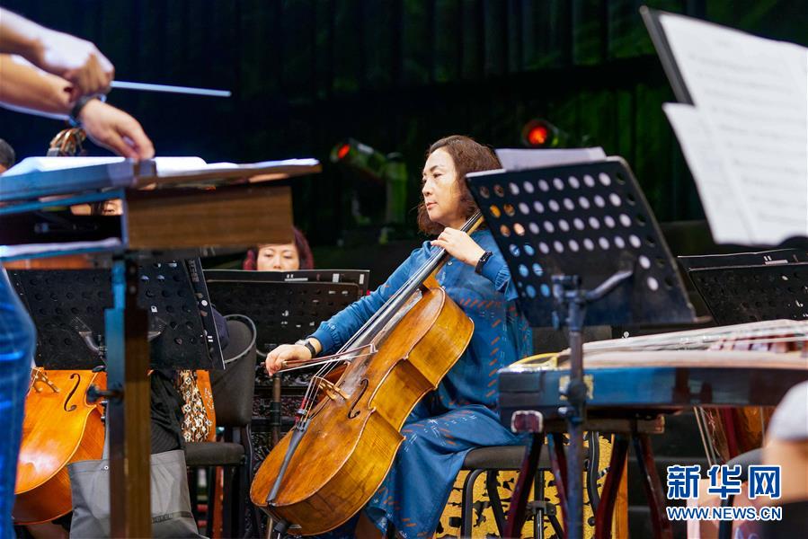 在澳門百老匯舞臺,記者見到澳門中樂團(tuán)總經(jīng)理蔡嘉琳時,她的樂團(tuán)正在用傳統(tǒng)民族樂器練習(xí)合奏《射雕英雄傳》《精忠報(bào)國》《枉凝眉》等經(jīng)典影視音樂作品名曲。