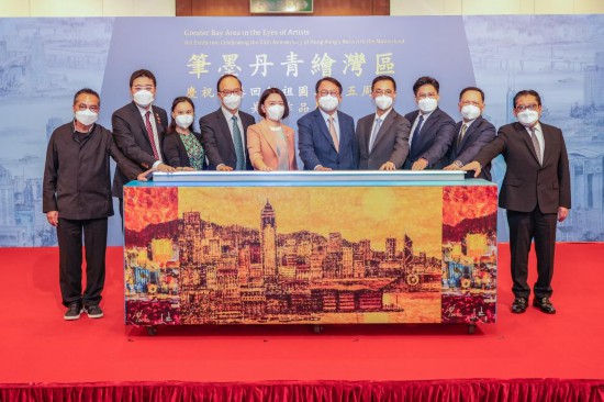 7月9日,“筆墨丹青繪灣區(qū)——慶祝香港回歸祖國25周年美術(shù)作品展”在香港中央圖書館啟動(dòng)。展覽共展出116件美術(shù)精品,旨在借助內(nèi)地及港澳美術(shù)家們的畫筆,記錄描繪粵港澳大灣區(qū)創(chuàng)新實(shí)踐,展望香港美好未來。新華社發(fā)